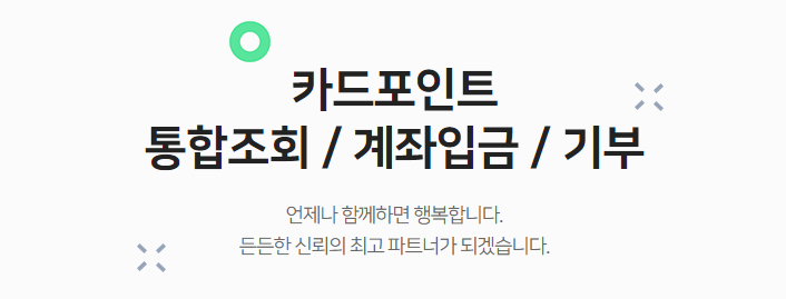 카드포인트통합조회 / 계좌입금 / 기부 언제나 함께하면 행복합니다. 든든한 신뢰의 최고 파트너가 되겠습니다.