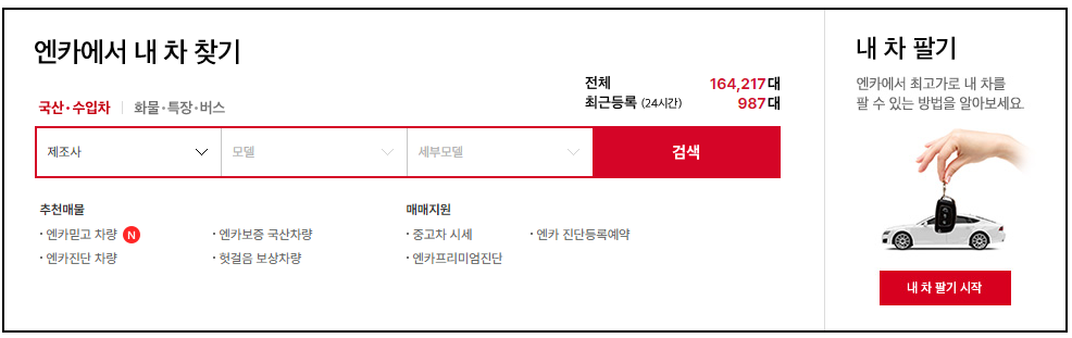 나의 드림카 플랫폼 엔카. 내 차, 판매부터 구매까지. 중고차는 엔카믿고 함께해요.