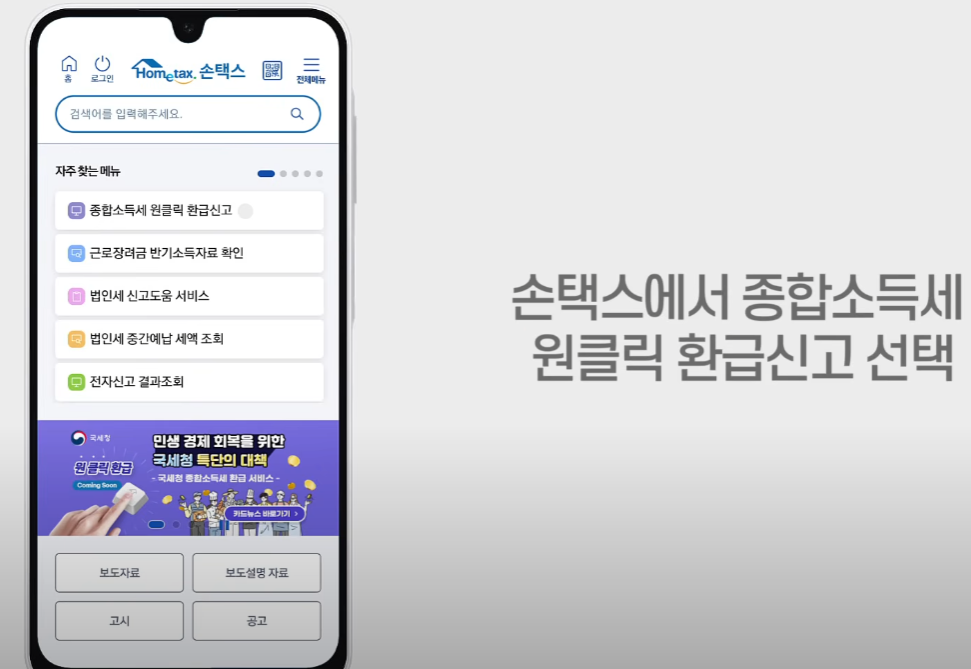 - '원클릭 환급 신고' 클릭: 메인 화면에서 관련 메뉴 선택