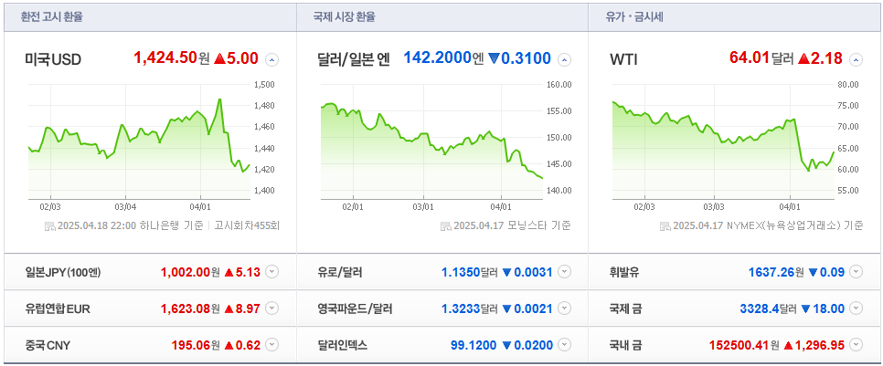 환율, 금리, 국제 유가 및 금 등의 원자재 가격은 시장의 방향성을 판단하는 중요한 기준입니다. 네이버금융 홈페이지에서는 이들 지표를 직관적인 차트 형태로 제공하여 이해와 분석이 용이합니다.
